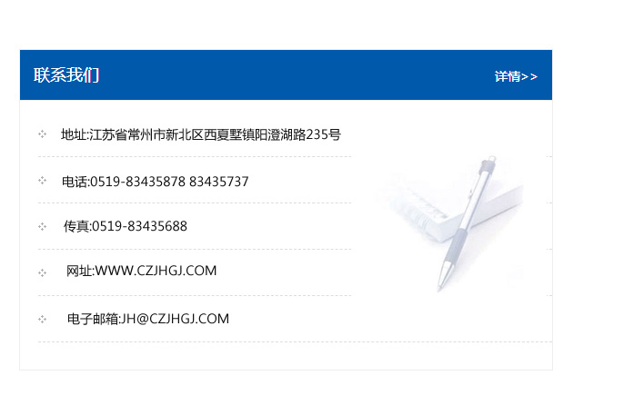 地址:常州市新北區友邦商務大廈1幢16、17層  電話:0519-85101652  傳真:0519-85112595  郵編:213022  網址:www.cz-jiayue_cn.hbalading.com  郵箱:xiajifengaa@163.com